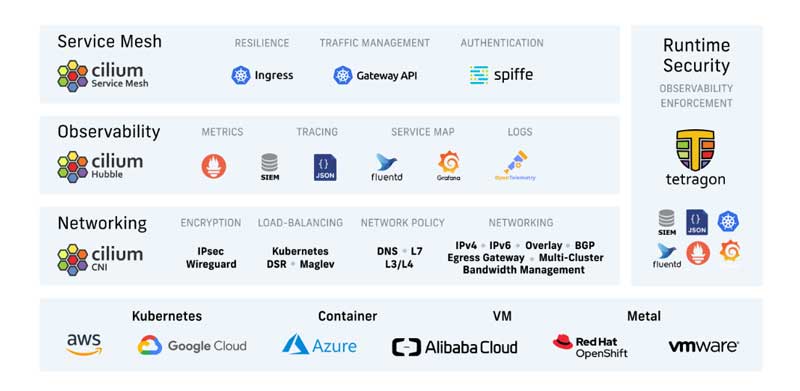 | 核心机制 | eBPF (扩展的伯克利包过滤器):它彻底抛弃了老旧、低效的 iptables 规则体系。直接在 Linux 内核层拦截、修改、路由网络包。性能极其炸裂,CPU 消耗极低。 |