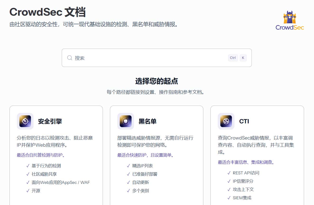 | 对接情报 | Bouncer (执行器):CrowdSec 本体只负责分析日志,拦截需要安装 Bouncer。支持 iptables (直接封 IP) 或 Nginx (返回 403 或 验证码)。 |