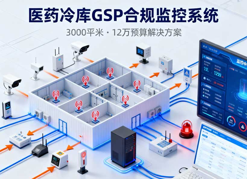 华东某二线城市医药流通企业,拥有两个老式冷冻库(-18℃)和一个冷藏库(2-8℃),总面积约 3000 平米...