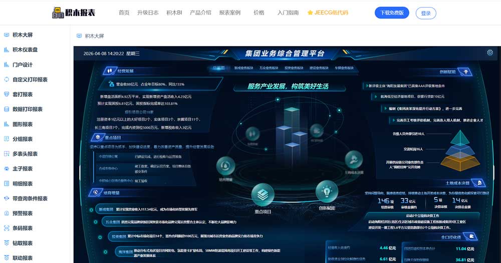 | 核心价值 | 类 Excel 的设计器:在网页里直接像用 Excel 一样画表头、合并单元格、设置边框粗细。你可以直接把 SQL 语句拖拽到单元格里绑定数据。做出来的报表,打印出来严丝合缝,这是国外 BI 软件(如 Metabase/Superset)绝对做不到的。 |